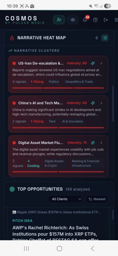 À l’heure où l’intelligence artificielle accélère et standardise la production de contenus, la communication financière se trouve confrontée à un paradoxe : produire plus n’a jamais été aussi simple, mais émerger n’a jamais été aussi difficile. Dans un environnement saturé, où les discours convergent et les analyses se répètent, la valeur ne se joue plus uniquement dans l’écriture, mais dans la capacité à identifier des angles, à capter le bon moment et à construire une lecture différenciante. Fondateur de l’agence Pulsar Media et co-créateur de Basis Point Channel, Sherif Mamdouh observe cette bascule au quotidien. À la croisée des enjeux éditoriaux et stratégiques, il défend une approche qui consiste à déplacer l’usage de l’IA en amont: non plus produire plus vite, mais penser plus tôt et plus juste. Avec COSMOS, outil d’« intelligence narrative », il explore une nouvelle grammaire de la communication financière, fondée sur l’interprétation, le croisement des données et la capacité à faire émerger du sens avant saturation.