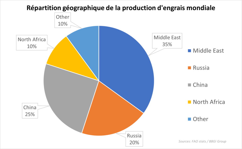 Contrairement au pétrole, le marché des engrais est caractérisé par une concentration géographique beaucoup plus extrême et par l’absence quasi totale de réserves stratégiques mondiales pouvant être activées en cas de crise.